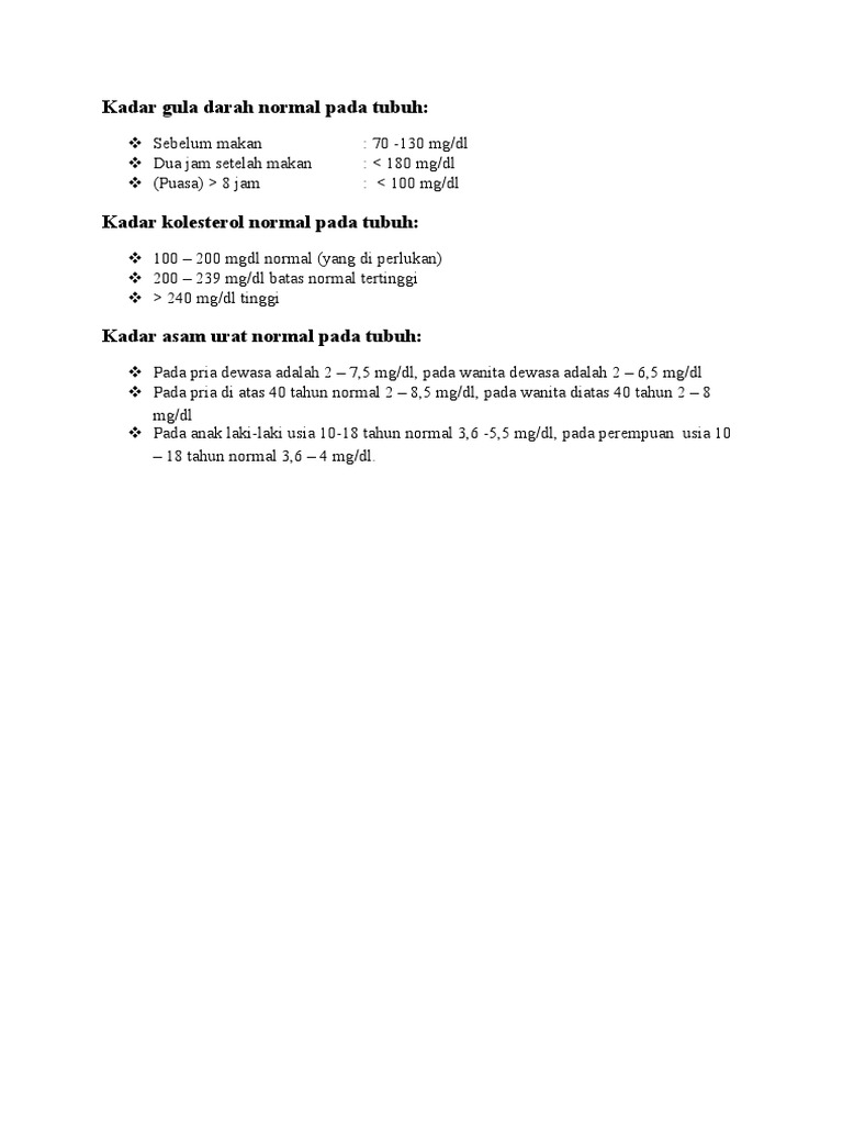 Doc Berapa Kadar Gula Darah Normal Manusia Imam Prakoso Academia Edu