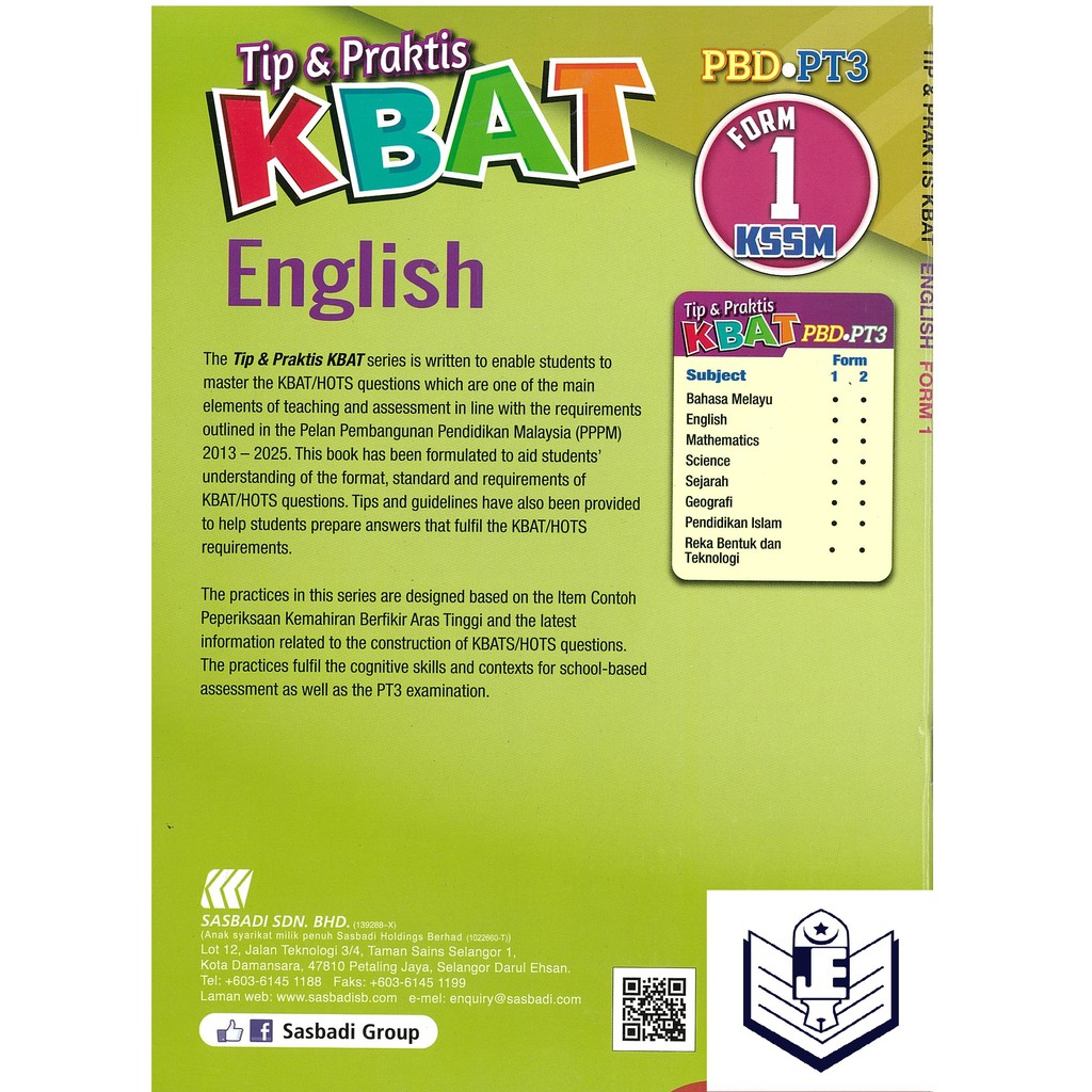 Sasbadi Tip Praktis Kbat Pt3 Form 1 English Shopee Malaysia