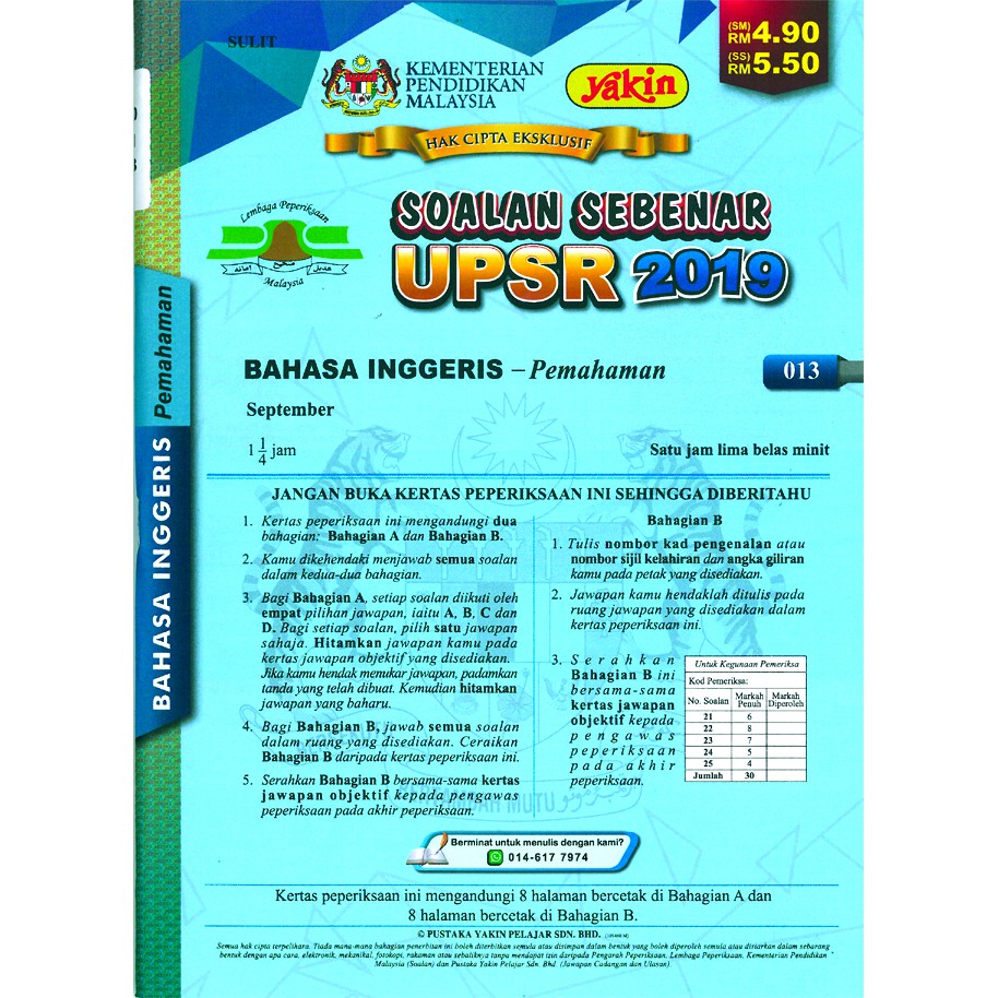 Soalan Sebenar Upsr 2019 Bahasa Melayu Penulisan 012 Shopee Malaysia