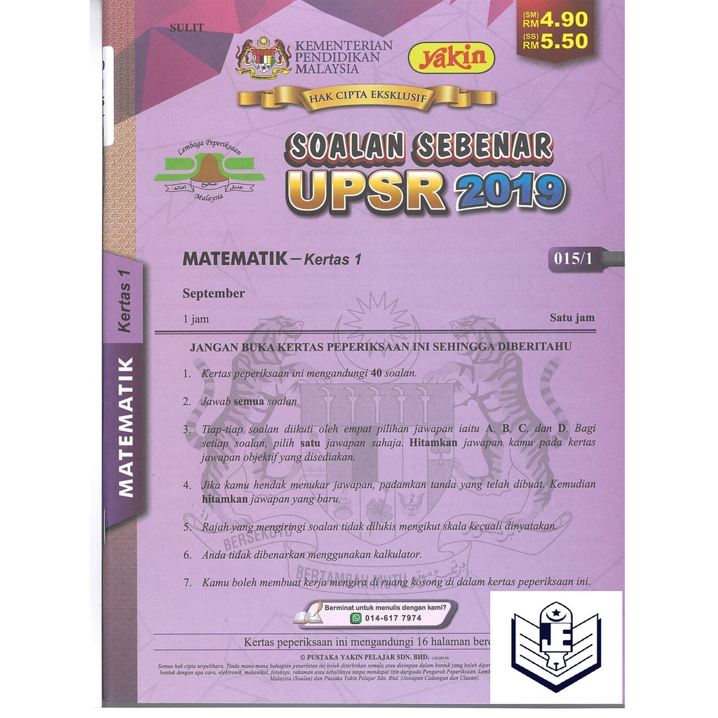 Soalan Sebenar Upsr 2019 Matematik Kertas 1 015 1 Shopee Malaysia