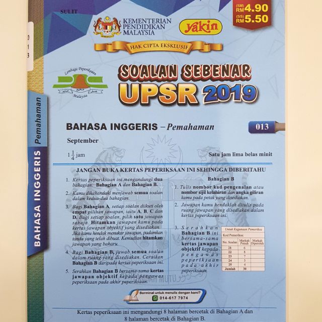 Soalan Sebenar Upsr 2019 Bahasa Inggeris Pemahaman 013 Shopee Malaysia