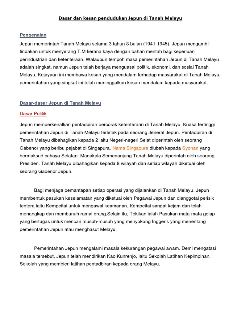Doc Dasar Dan Kesan Pendudukan Jepun Di Tanah Melayu Jaime Egit Academia Edu