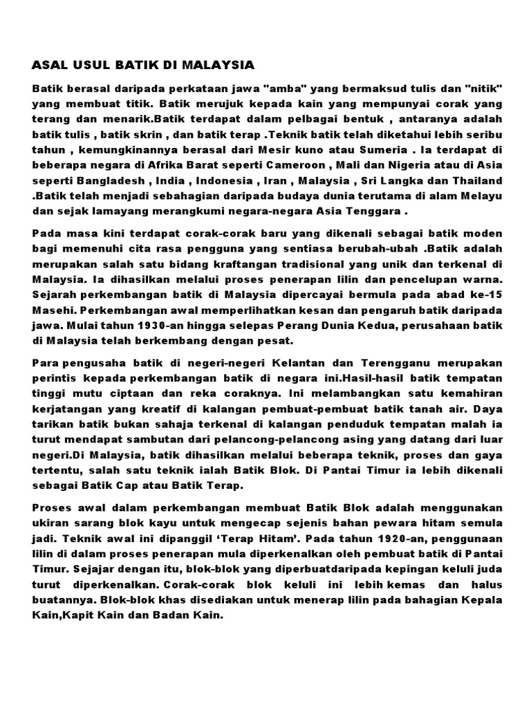 Asal Usul Batik Di Malaysia Apel Daur Ulang