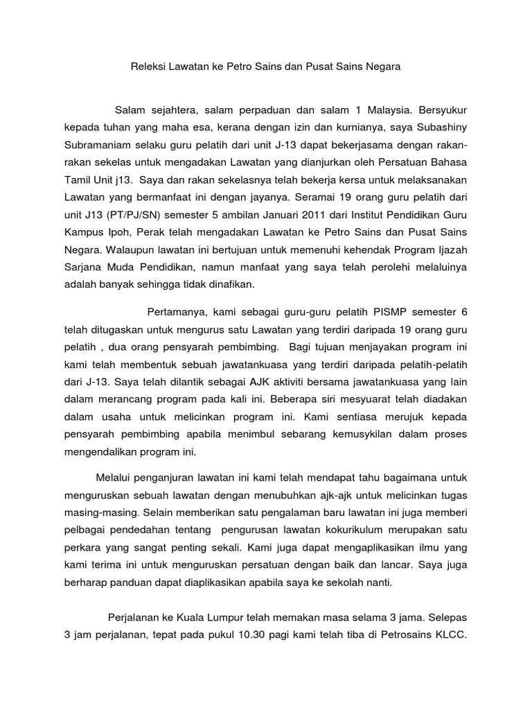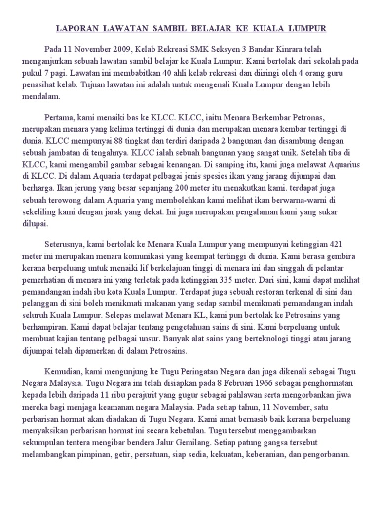 Karangan Laporan Lawatan Sambil Belajar Ke Kuala Lumpur Karangan Contoh Cikgugoh
