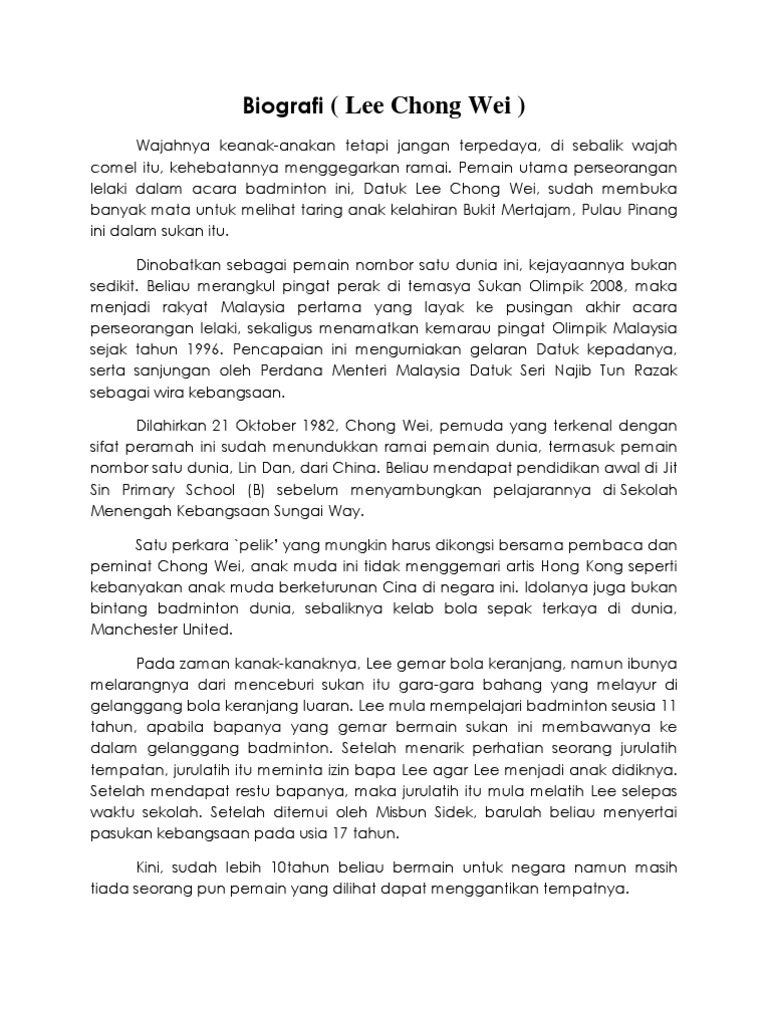 Doc Biodata Datuk Lee Chong Wei Zaimah Anuar Academia Edu