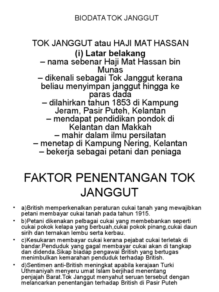 Tok Janggut Biodata Dan Latar Belakang Documents