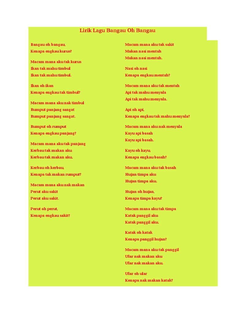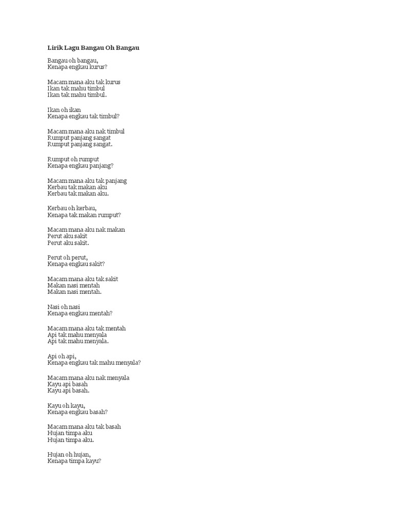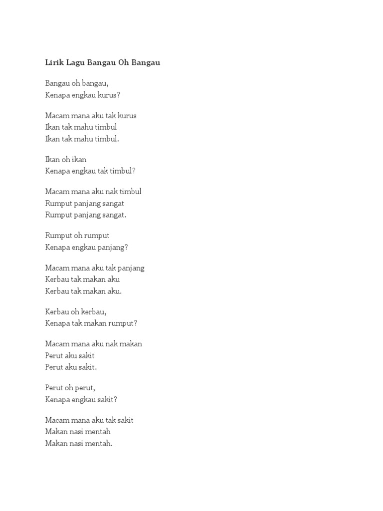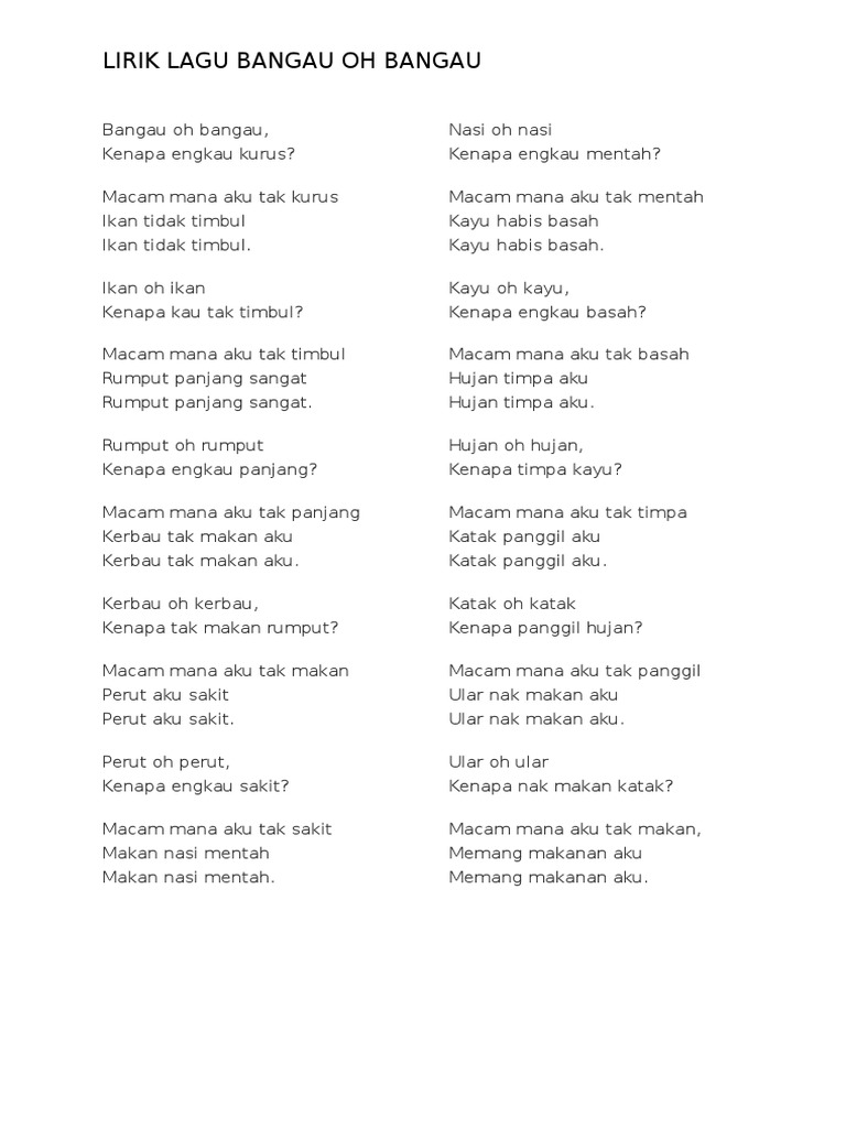 Lirik Lagu Bangau Oh Bangau Pdf