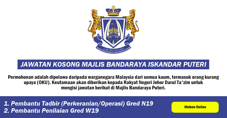 Jawatan Kosong 2019 Di Majlis Bandaraya Iskandar Puteri Tetap Berpencen Ejawatankini Com