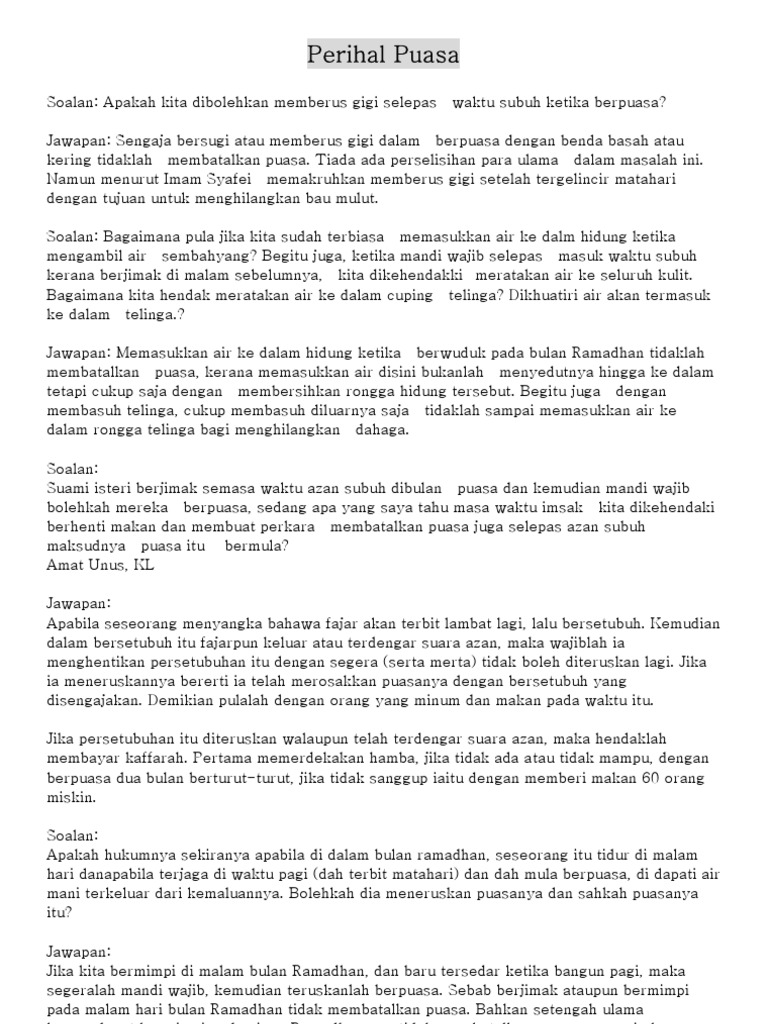 95 Soal Jawab Ramadhan Puasa Oleh Pecah Petak Publikasi Facebook
